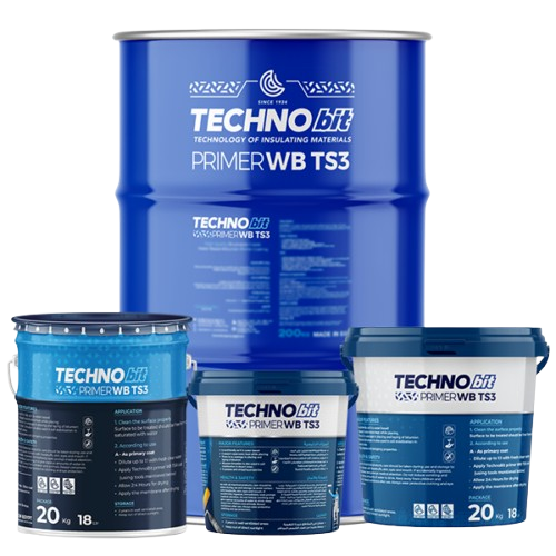 * TECHNOBIT PRIMER WB TS3 is a brushable, water-based sulphate resistant bitumen coating. * It is formed by the anionic emulsification of pliable bitumen and is both stable and easy to apply. * It adheres to all types of surfaces and can also be diluted to become a penetrating priming coat for use on porous surfaces. * General purpose damp proof coating for concrete. – Waterproofing and protective coating for basements, foundations, and retaining walls. – A maintenance coating for roofs and walls over concrete or metal surfaces. – Bonding and priming coat for a variety of bitumen-based waterproofing systems, whether liquid, felts, or membranes.